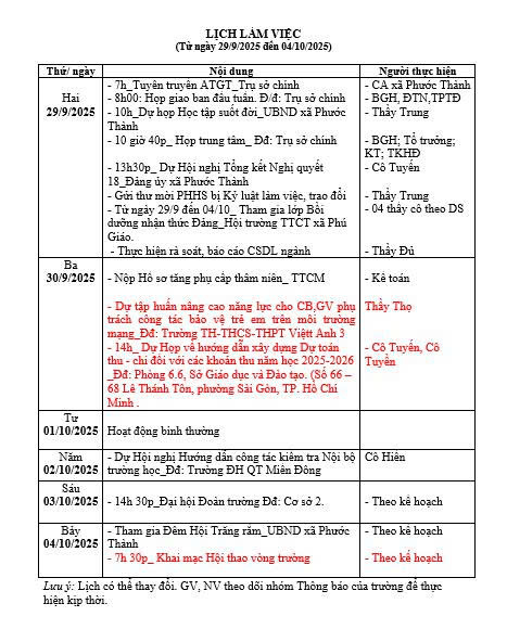 Tuần 40 từ 29/09/2025 đến 05/10/2025